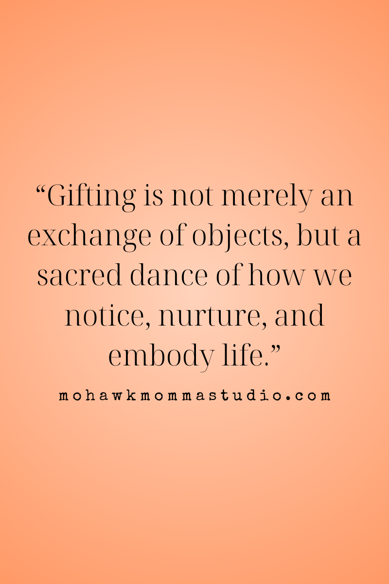 “Gifting is not merely an exchange of objects, but a sacred dance of how we notice, nurture, and embody life.”